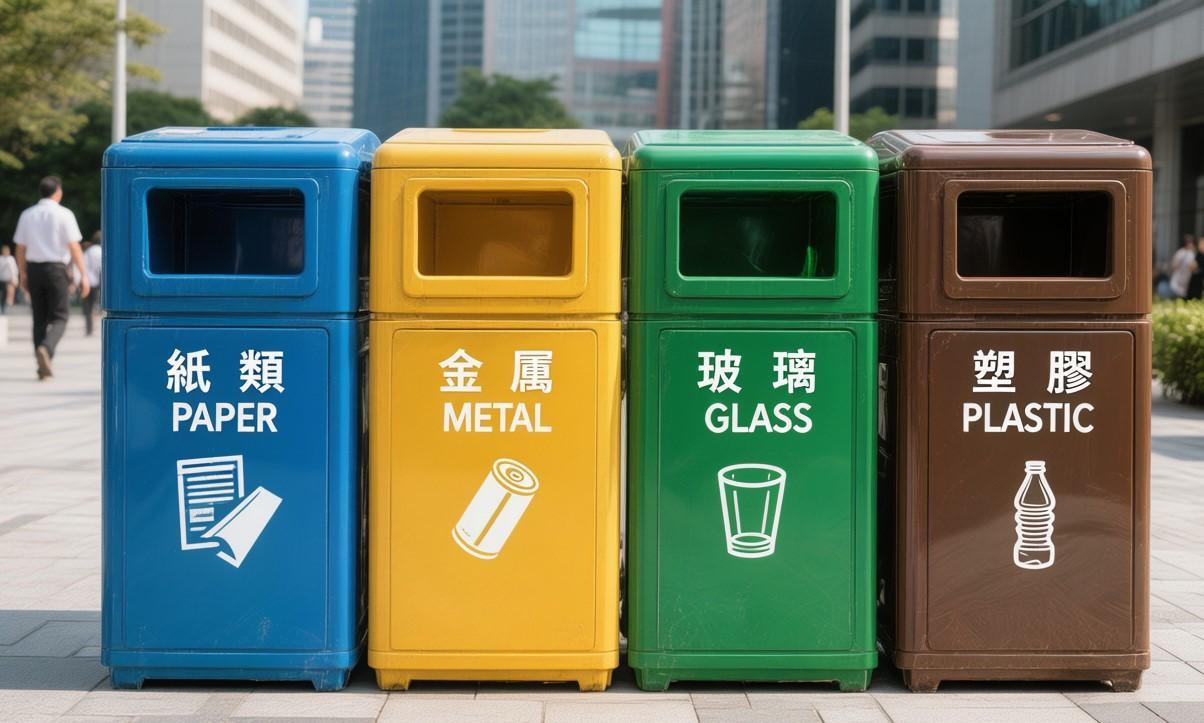 Recycle(循環再造):例如把紙、鋁、塑膠、玻璃等垃圾放入回收箱,讓它們成為可再造產品。