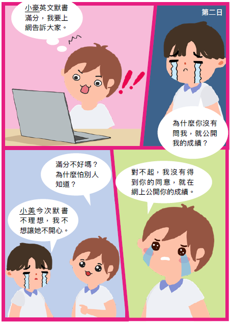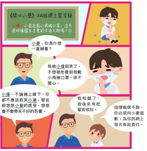 ★若不幸遇上網絡欺凌事件,同學應保持冷靜,不應作出回應及反擊,避免欺凌者再度追擊。