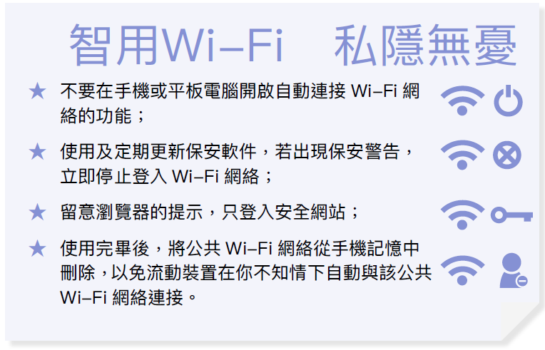 ★ 使用公共Wi-Fi時應審慎,並保持警惕。