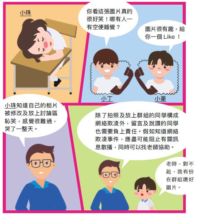 (2)通過漫畫,明白目擊者縱使不是網絡欺凌製造者,但助長事件發生,同樣對被欺凌者構成傷害。