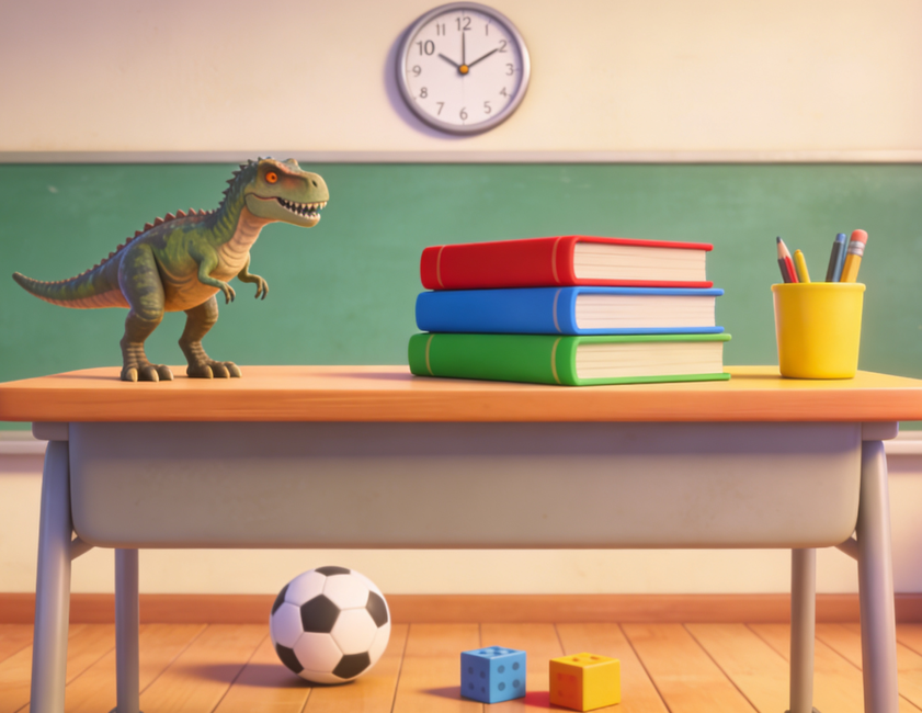 「小美的書包是藍色的。書包裡有一本語文課本、一本數學練習冊,和一個紅色文具盒。文具盒裡有兩支鉛筆、一把尺子和一塊橡皮擦。側邊口袋還放著一個水壺。」