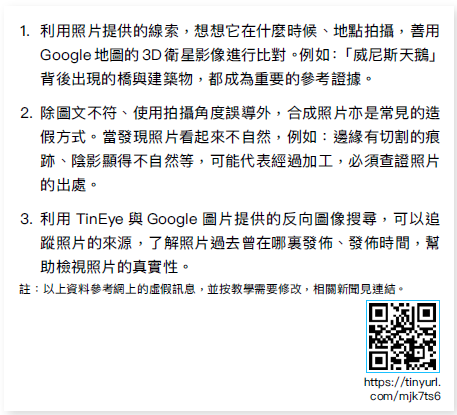 (2)透過資料3 的例子,學習利用資料4 提供的方法,查證照片真偽。
