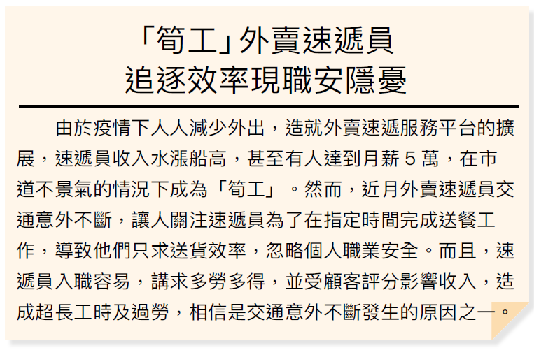 ★ 然而,外賣速遞平台上,看似微不足道的評分,其實會影響到速遞員的收入。
