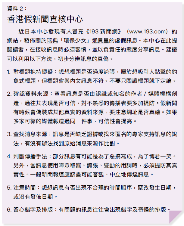 ★ 當懂得利用新聞準則(包括:準確性、可靠性、中立性)分析媒體機構的報道手法,以分辨可信的新聞資料來源。