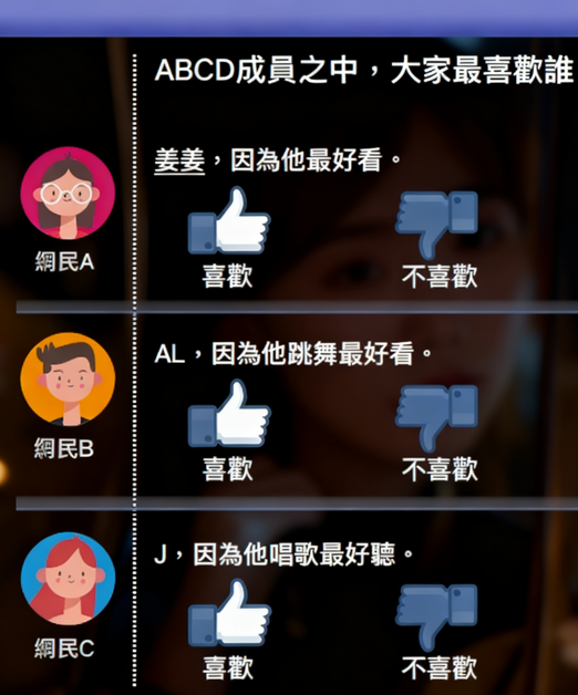 A.留言回覆支持隊長的理由 B.留言否定其他成員